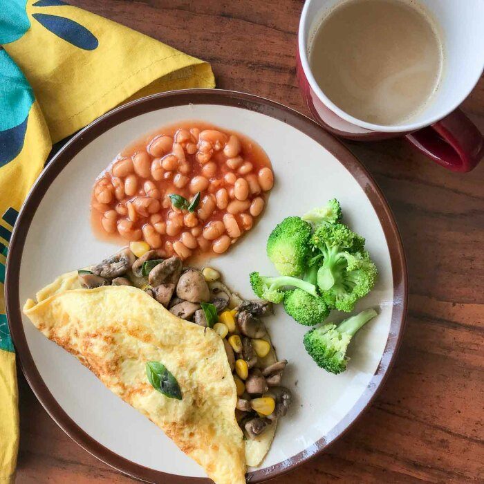 Если вам не по душе мясные блюда или хочется взять перерыв – попробуйте этот сытный вариант омлета. Сдобренный с помощью фасоли и сыра, он прекрасно подойдёт в качестве полезного перекуса.