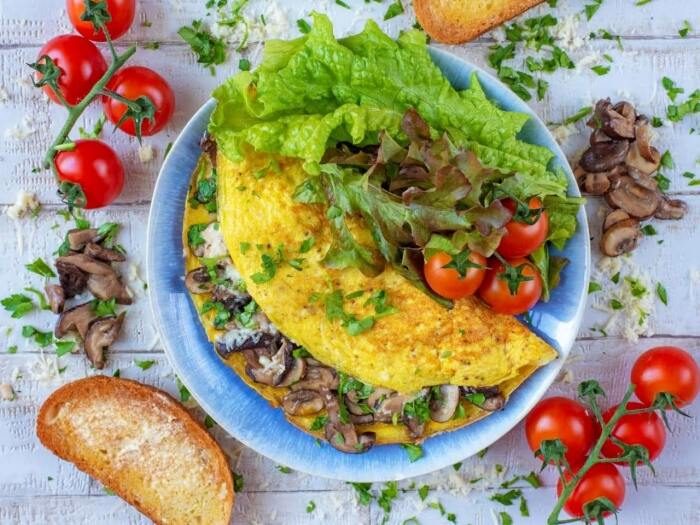 Одна из самых популярных начинок для омлета – конечно же, грибы. Мягкие и нежные, обжаренные на сковороде шампиньоны точно не оставят никого равнодушным.