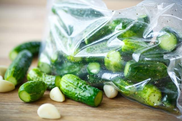 В социальных сетях стали вирусными рецепты соления огурцов в полиэтиленовых пакетах. Однако засолка в обычном фасовочном пакете, предназначенном для хранения и транспортировки товара, опасна. Продукты с повышенной кислотностью (квашеная капуста, солёные огурцы) входят в реакцию со слоями полиэтилена, образуя химические соединения. Также из непищевого полиэтилена выделяются опасные вещества, отравляющие печень и почки. Для этого рецепта нужны специальные полиэтиленовые пакеты с надписью: «Для пищевых продуктов».