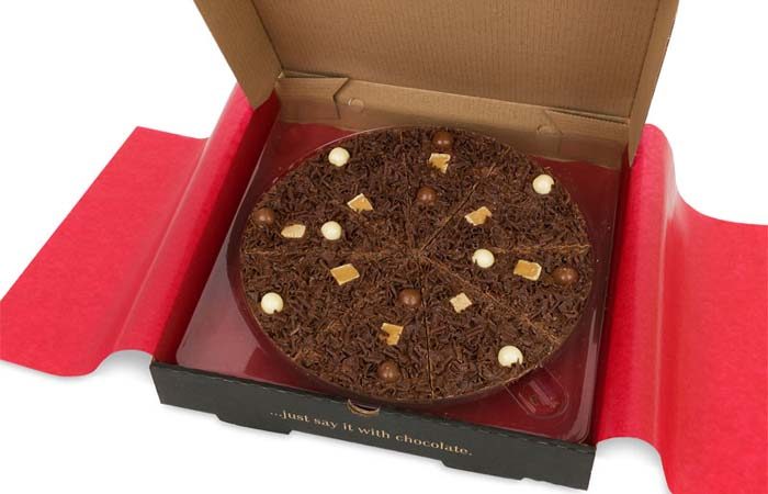 Угощение от компании «Gourmet Chocolate Pizza», шоколадная пицца с медовыми сотами стоит 30долларов. Она украшена 16 шариками из пористого молочного и белого шоколада и ванильной помадкой. Десерт может храниться до 9 месяцев, если хватит силы воли удержаться от соблазна. Несмотря на большое содержание сахара и калорий, эту пиццу принято считать вегетарианской. Заказ можно сделать на сайте компании, его доставят в любой уголок мира.