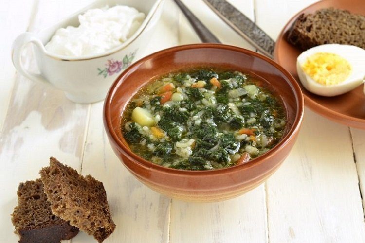 Тебе понадобится: 2 л мясного бульона, полстакана риса, 30 г молодой крапивы, 300 г картофеля, 1 луковица, 1 морковь, 2 вареных яйца, полпучка укропа, 2 ст.л. растительного масла, молотый черный перец, соль.
