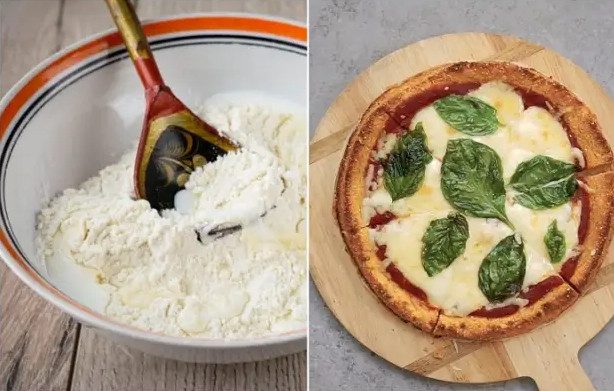 В список ингредиентов входит стакан муки, смешанный с 1,5 чайной ложкой разрыхлителя, 200 мл греческого йогурта, соль, перец и другие специи по желанию. Процесс приготовления очень легкий: в миску необходимо высыпать просеянную муку, добавить йогурт, соль и специи. Перемешайте ингредиенты, а затем перенесите тесто на кухонную столешницу, предварительно посыпанную мукой. Чтобы тесто хорошо держало форму, было упругим и красивым, его необходимо вымешивать около 5-8 минут. По истечении времени раскатайте его в лепешку среднего размера толщиной примерно 3 мм. На эту основу выложите начинку и отправьте в духовку, разогретую до 220 градусов. Если боитесь, что во время переноса теста на противень оно деформируется, раскатывайте сразу на подносе.
