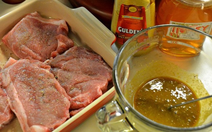 Хорошим товарищем любого мяса является горчица. Ее привыкли использовать исключительно для аромата и придания готовому блюдо пикантных ноток. А ведь горчица еще и смягчает мясо, поэтому если обмазать ею кусок свинины или говядины перед запеканием, оставить на час, а затем смыть – блюдо получится фантастическим. Если вы планируете готовить отбивные, то можно нарезать мясо на подходящие по толщине кусочки, отбить, а затем намазать горчицей и оставить на 15 минут – этого времени будет достаточно для того, что она хорошо пропитала мясо. Смывать горчичный маринад или нет – решайте сами. Здесь все зависит от ваших вкусовых предпочтений.