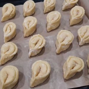 Сформировать булочки и выложить на лист, застеленный пергаментом. Как формировать булочки смотрите видео.