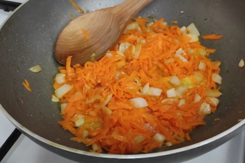 Отправь морковь к ставшему прозрачным луку.
