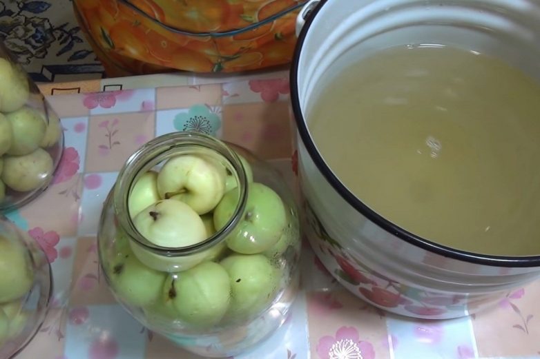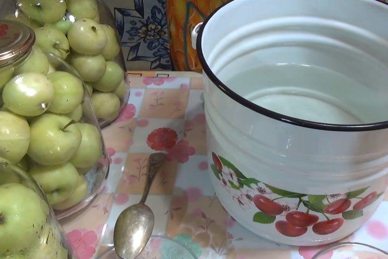 Теперь заливкой наполняй баночки с яблоками таким образом, чтобы все плоды оказались полностью покрыты. Сверху попросту накрой крышками. Остаток заливки сохрани, перелив его в отдельную емкость. Эта «лишняя» жидкость в дальнейшем понадобится, чтобы доливать в банки. Ведь яблочки будут напитываться наливкой, поэтому без добавки им не обойтись. Следи, чтобы плоды были всегда полностью покрыты жидкостью.