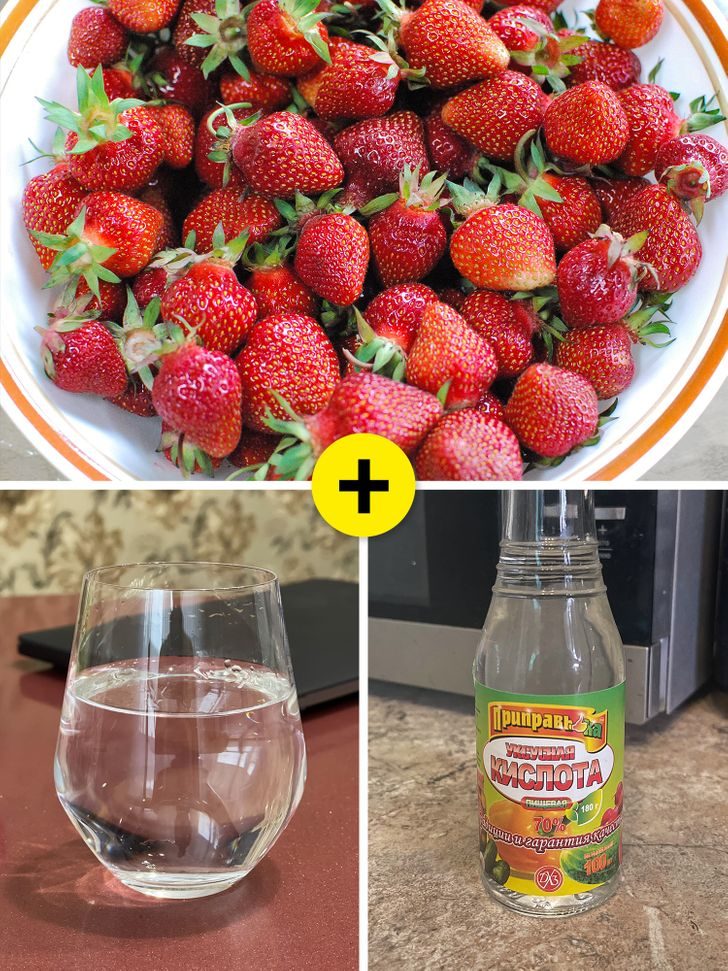 Чтобы ягоды дольше оставались свежими, следует промыть их таким раствором: 2 ложки уксуса на 3 стакана воды