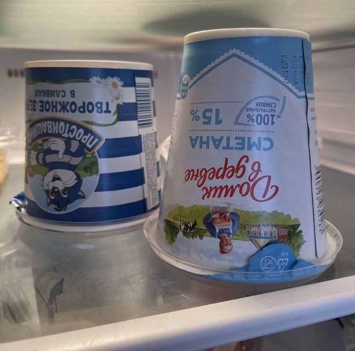 Банки с творогом и сметаной лучше хранить в перевернутом виде. Так создается эффект вакуума, что предотвращает размножение бактерий