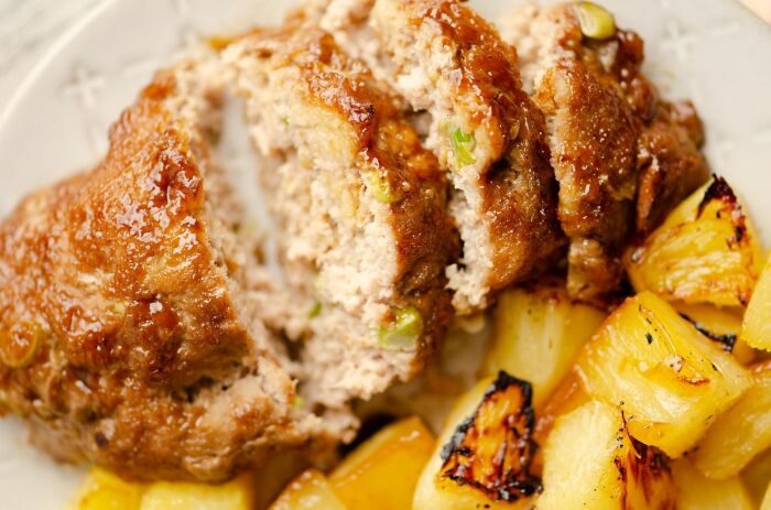 Если ваша фантазия иссякла, и вы не знаете, что приготовить — то обратите внимание на мясной рулет с рисом и ананасами. Блюдо получается очень сытным, питательным и, конечно же, вкусным.