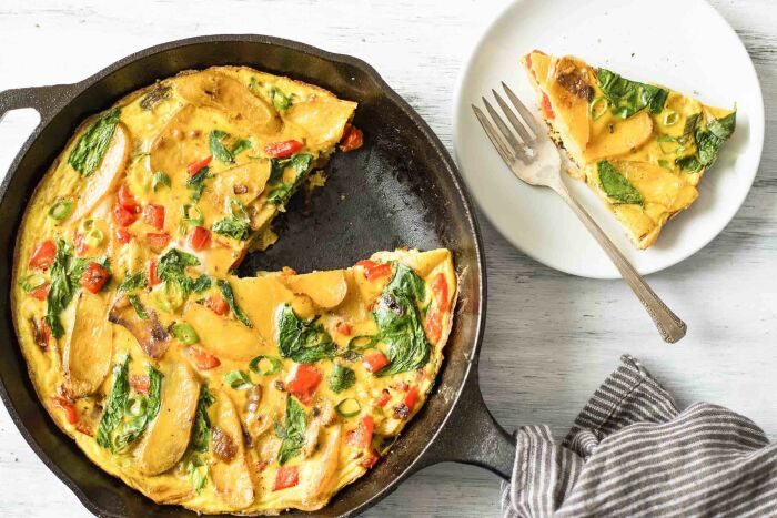 Фриттата – это более привычный для нас омлет, который от обычного отличается оригинальной начинкой и прожаркой с двух сторон. Для ужина эта омлетная лепешка подойдет как нельзя кстати, ведь туда можно добавить любые овощи или же мясо по вкусу.