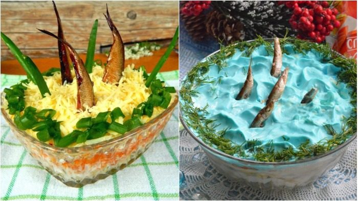 Не только варенье и другая консервация ушли на второй план. Есть еще и салаты давно позабытые, например, «Рыбки в пруду». Готовился он слоями с «выпрыгивающими» наружу шпротами. Это было не только вкусно, но еще и красиво. Некоторые хозяйки умудрялись пойти дальше. Они каким-то образом подкрашивали майонез в голубой цвет и получалось почти настоящее озеро. Настоящее произведение искусства и по вкусовым характеристикам, и по внешнему виду. К тому же никаких сверх необычных ингредиентов не требовалось.
