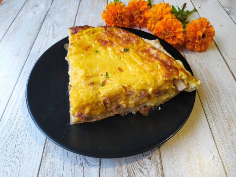 8. Отправляю киш в разогретую духовку на 180 градусов примерно на 25-30 минут.
