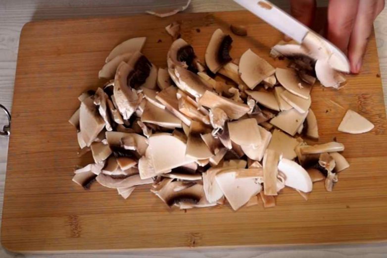 Помой и нарежь пластинками грибы. Обжарь в растительном масле по пару минут с обеих сторон, до золотистого цвета. Выложи на бумажное полотенце, чтобы удалить лишний жир.