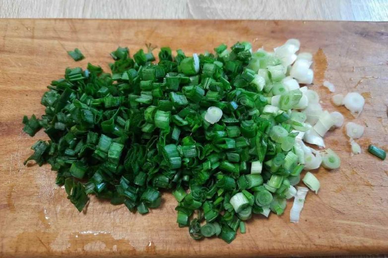 Нашинкуй зелень. Добавь в салат обжаренные грибы и зелень.