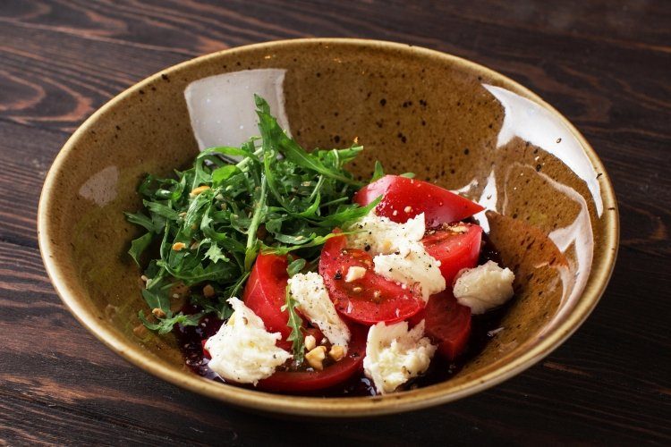 13. Грузинский салат с козьим сыром, рукколой и помидорами