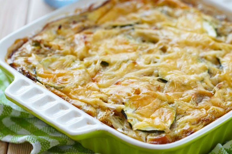 Основа нашей запеканки — овощи. Яйца нужны лишь для того, чтобы связать всё воедино. Несмотря на это, запеканкой могут наесться вполне взрослые люди, уставшие после рабочего дня. Но мы рекомендуем подавать ее к столу с каким-нибудь домашним соусом. Еще неплохо подойдет мясная добавка, сосиски или обжаренные колбаски.