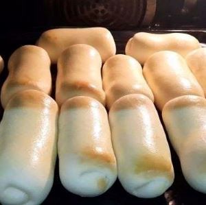 Булочки смазать составом из 1 ст.л. молока и 1 желтка и отправить выпекаться в разогретую духовку примерно на 25 минут при температуре 170 градусов.