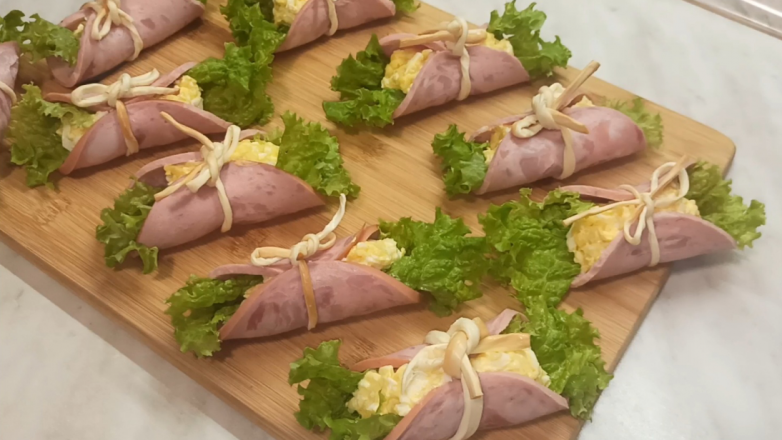 Смотрите коротенькое видео приготоления рулетиков из ветчины ниже…