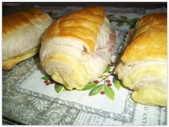 Всё очень просто и быстро — для начала нам нужно слоёное тесто разложить на стол и разделить на шесть равных частей.Затем сверху каждую часть намазать томатной пастой или кетчупом, а сверху посыпать сухими приправами. каждую часть намазать томатной пастой или кетчупом, а сверху посыпать сухими приправами