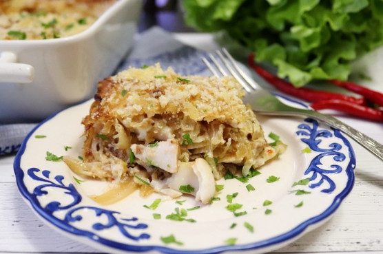 По сути рыбная караваиха — это очень вкусная запеканка из капусты и рыбы, «скреплённая» сметанно-мучной заливкой.