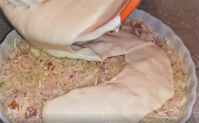 Заливной пирог с капустой и копченостями