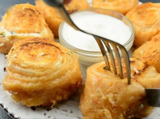 Ароматные и нежные рулетики из муки, помидор и сыра