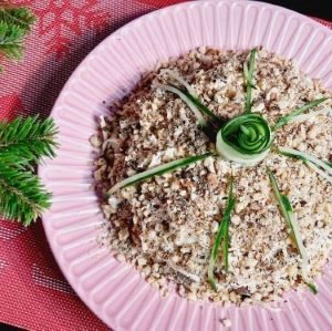 Украсить салат по своему желанию и охладить пару часов в холодильнике.