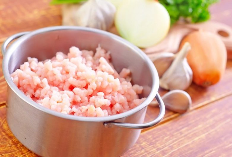 Лук очисти и мелко порежь. Фарш можно брать любой. У меня обычно это свинина + говядина, но Ольга Матвей советует брать куриный, так как он быстрее прожаривается. При помощи пресса или ножом измельчи чеснок.