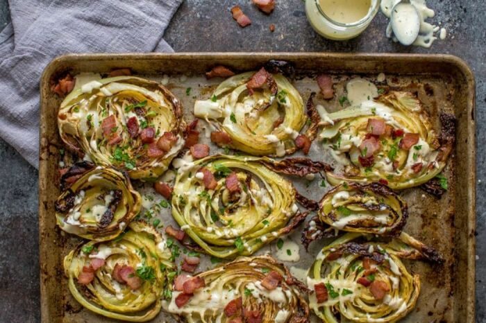 Запекать можно не только картофель, баклажаны и перцы, а и обычную белокочанную капусту, которая получается настолько вкусной, что пальчики оближешь. Сочная и ароматная, сдобренная специями и пряными травами, с добавлением бекона, она приобретает яркий насыщенный вкус, перед которым нереально устоять, ведь выглядит и пахнет всё это мега аппетитно.