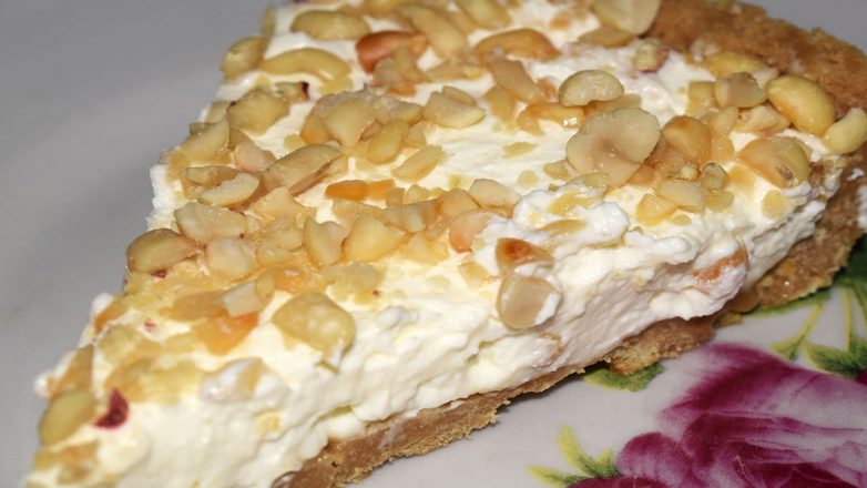 6. И последний штрих, посыпаем сверху измельченным арахисом. Отправляем в холодильник на 3-4 часа.