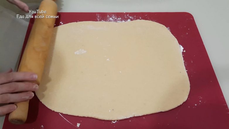 Покрываем все тесто начинкой и сворачиваем рулет.