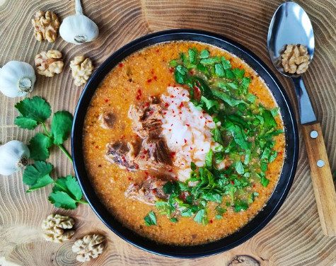 Даже само слово «харчо» переводится как говяжий суп. Уже понятно, что с выбором мяса сложно промахнуться. В более современных вариациях харчо готовят также из свинины, баранины, курицы и даже рыбы. Экспериментировать, разумеется, можно, но для максимально аутентичного блюда лучше выбрать говяжьи рёбра или грудинку.