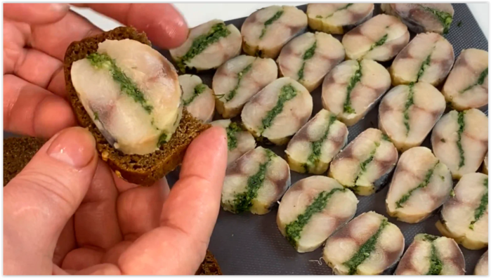 У нас должна получиться такая плотная «колбаска». Чем плотнее — тем лучше рыбка пропитается. Проделываем такое же со всеми филе.