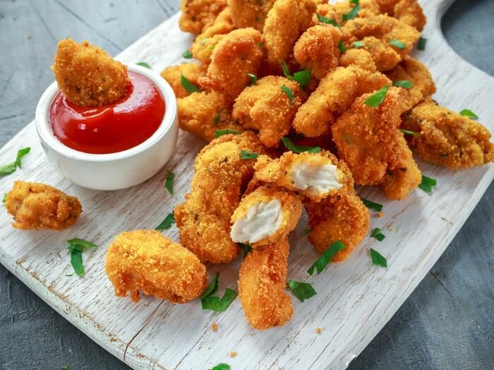 Что может быть вкуснее жареной курочки? Только куриные наггетсы, хрустящие снаружи и очень сочные внутри.