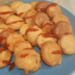 Обжаривала я «сардельки в кляре» примерно около минуты с каждой стороны на огне выше среднего.