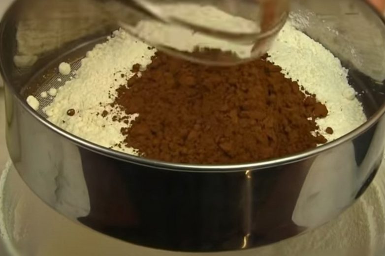 Просей через сито муку с какао.