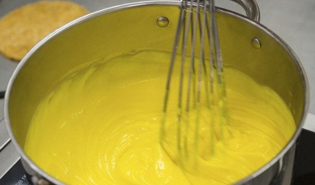 Параллельно с нагреванием молока венчиком тщательно взбей яйца с мукой. В конце силиконовой лопаткой собери остатки крема со стенок посуды.