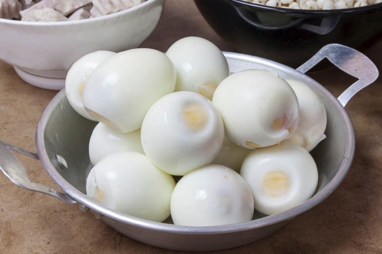 Для начала нужно выбрать подходящие яйца. Они не должны быть слишком крупные. Чем меньше, тем лучше. Их нужно сварить в крутую. После дать остыть и очистить.