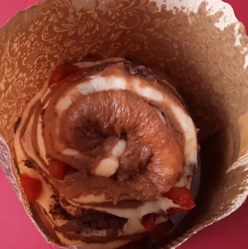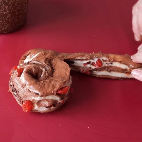 Формируем кулич. Такой кулич еще называют Краффин. Сворачиваем рулет, соединяем края, немного прокатываем полученную колбаску. А как сформировать дальше кулич, я рассказываю подробно в видео или см.фото.