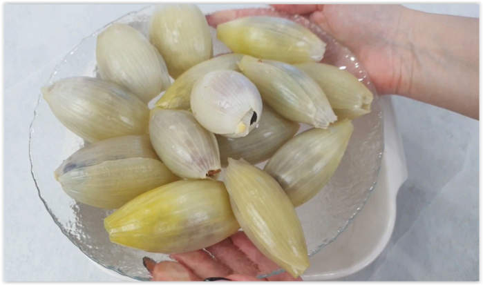 Вынимаем лук из воды шумовкой и даем немного остыть.