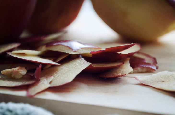 Кожура яблок ценится не только за свои полезные свойства. Красиво нарезанные кусочки яблочной кожуры имеют еще и эстетическую ценность. Весьма уместна декоративная стружка из кожурок будет смотреться в салатах, особенно в таких, как «вальдорф», где яблоку отведена важная роль во вкусовом букете блюда.