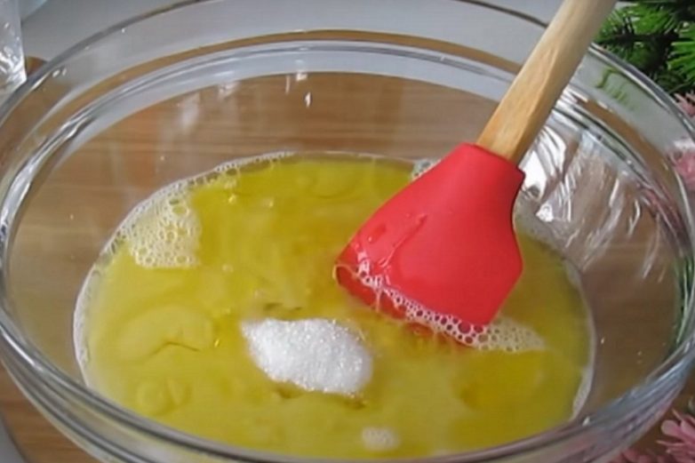 Взбей 1 яйцо венчиком и добавь к нему молоко, воду и оливковое масло. Добавь сахар, соль и сухие дрожжи. Всё хорошо перемешай и всыпь просеянную муку. Оливковое масло придает пицце особый аромат, но если такого не оказалось дома, можно использовать подсолнечное.