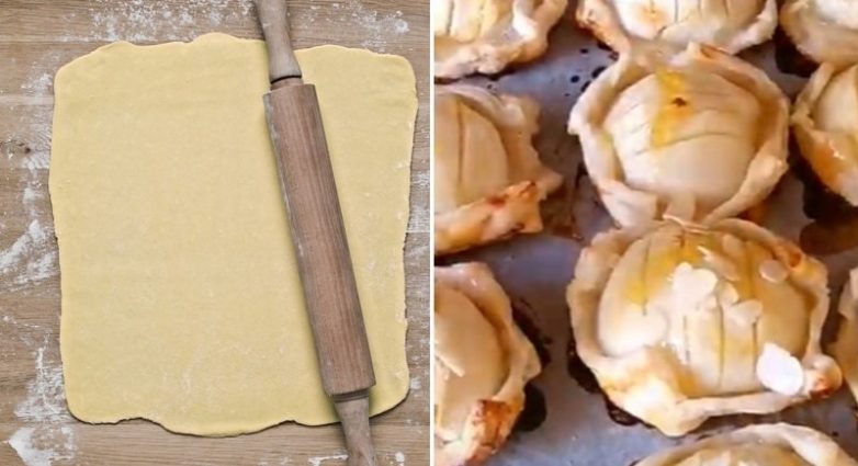 Рецепт приготовления нежных кремовых открытых слоек с яблоками.