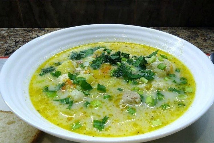 Приготовление: Нарежь мясо на кусочки и отвари до готовности. Раздели цветную капусту на мелкие соцветия и обжарь до румяности. Картошку с морковью нарежь кубиками, добавь в бульон и вари еще 20 минут. Добавь цветную капусту и плавленый сыр, а когда он растает – рубленую петрушку. Через пару минут сними суп с огня.