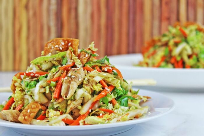 Нежная и в меру острая курочка, сочные овощи и ароматное масло – вот главные составляющие ещё одного корейского салата.