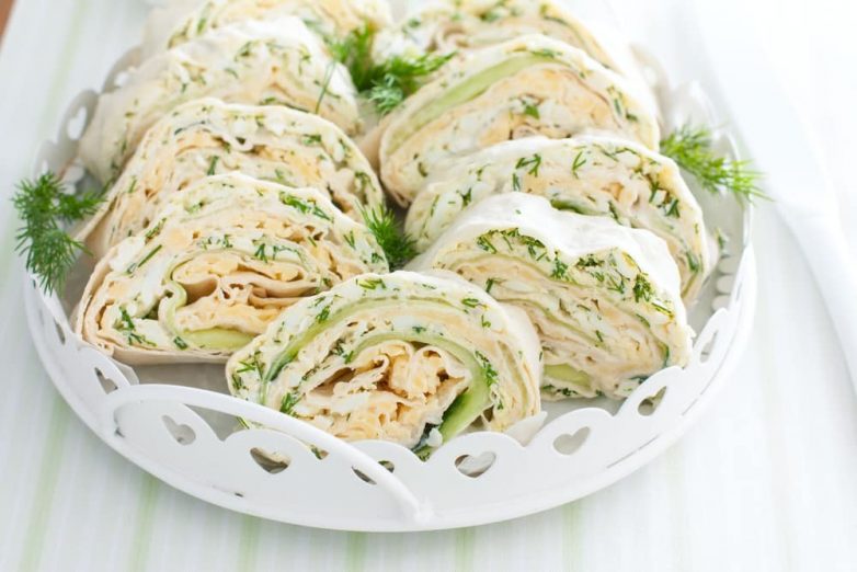 Рулет из лаваша с огурцом, яйцом и сыром