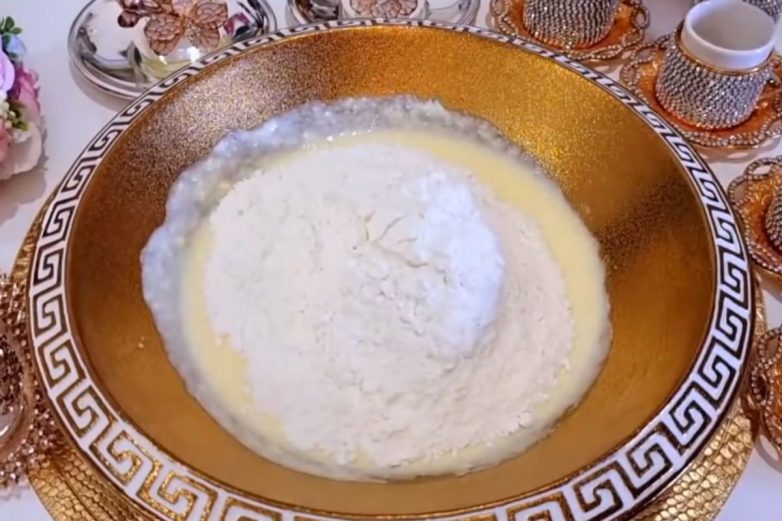 Добавляй в емкость муку и разрыхлитель, а затем замешивай мягкое тесто. Накрой крышкой и дай тесту «отдохнуть» 10 минут.