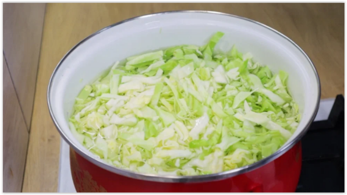 Капуста сварилась. Сливаем её через дуршлаг.