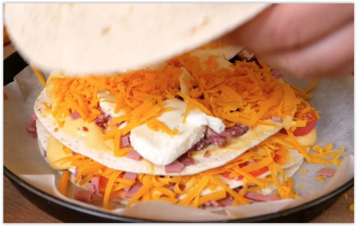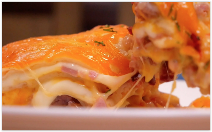 Готовим мы сегодня очень сырную мощную еду. Можно назвать это четырехэтажной пиццей, но скорее это лазанья.