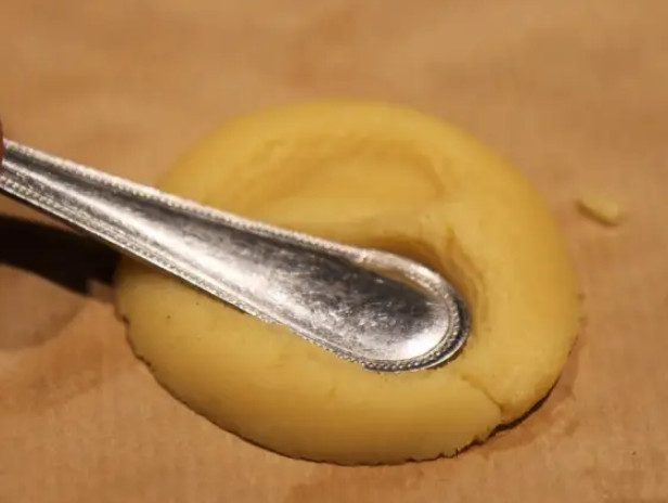 Если и бутылочки нет, можно сделать сердечки с помощью чайной ложечки. Делаем небольшие лепешечки и внахлест ручкой ложки делаем в печенье углубления. Получается сердечко. Ниже, в галерее я показала, как это сделать.